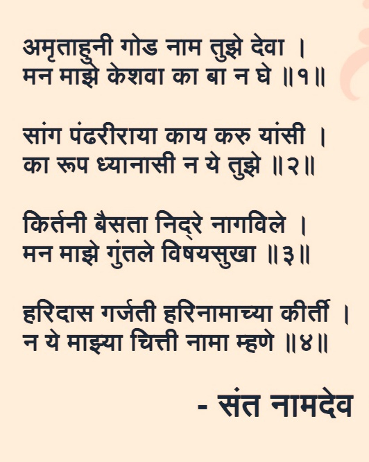 नामदेवांच्या अभंगात नाद लय तालाचा अपूर्व संगम आहे.